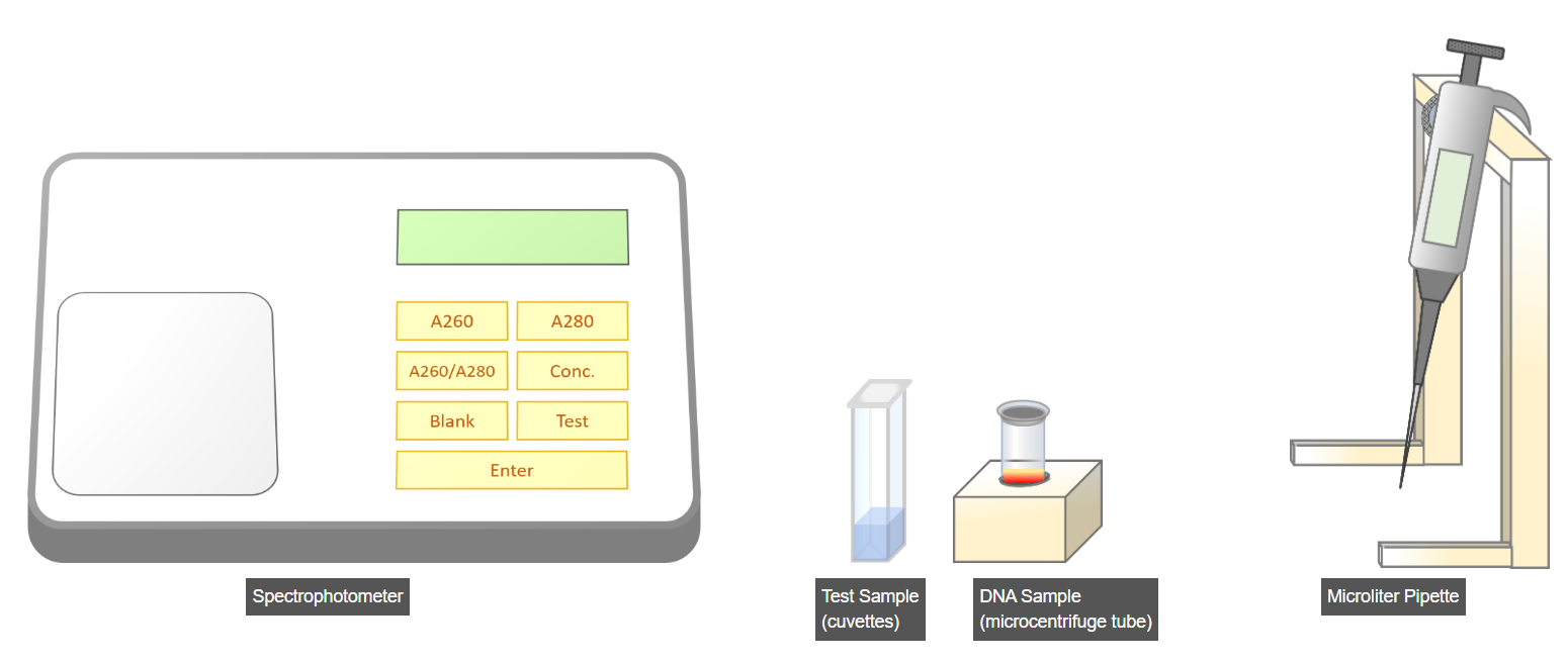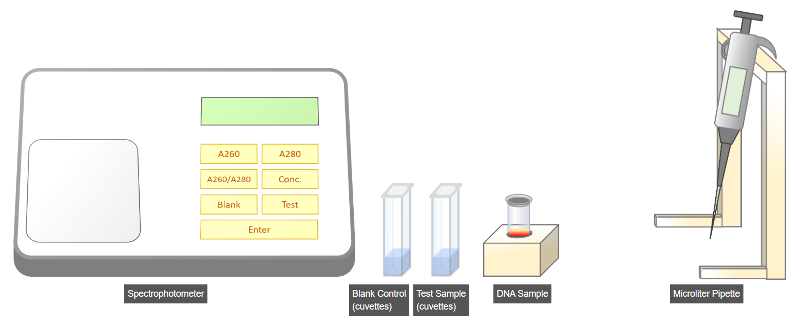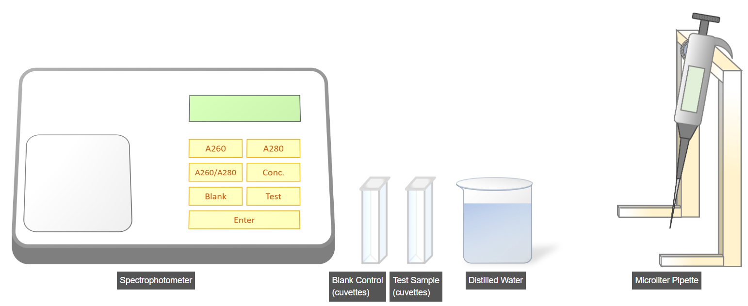 - Open the spectrophotometer lid and insert the DNA sample cuvette.
