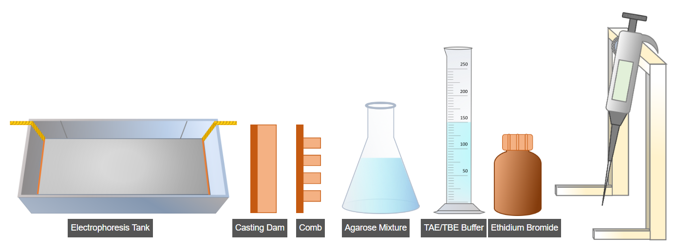 - Add 5 µL of ethidium bromide to the agarose solution (handle with safety).
