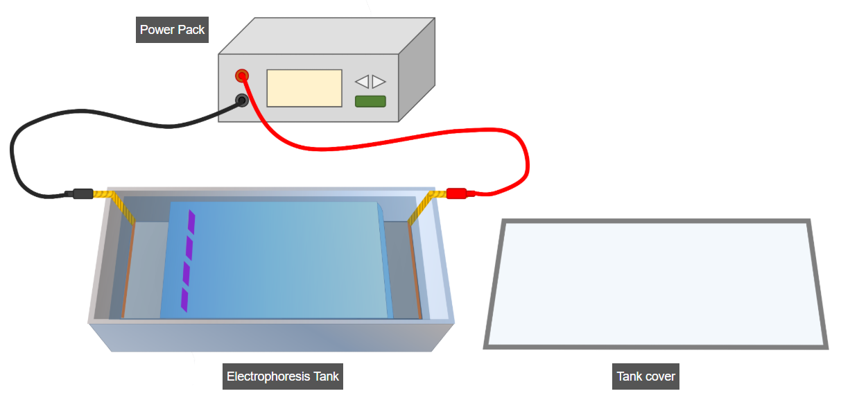 - Pour TAE/TBE buffer into the tank until the gel is fully submerged.