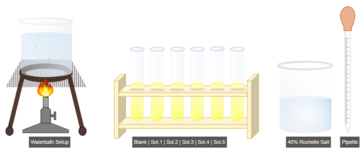 - Add 1 mL of 40% Rochelle salt solution to the test tubes.