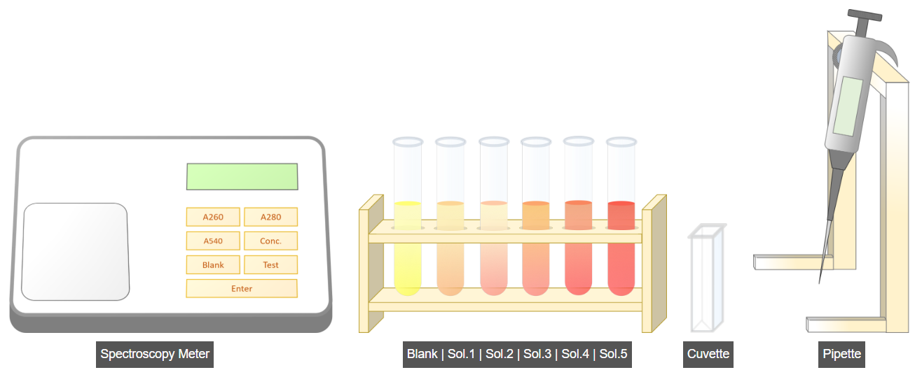 - Add the sample solution into Test Tube 1 as specified in the table.