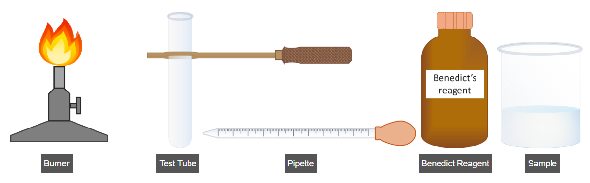 - Add 2 mL of Benedict’s reagent to the test tube.